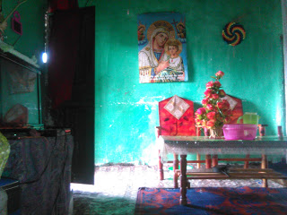 Sorry I was sick yesterday so no picture. Today I wanted to show you part of my friend’s house. The typical way to decorate houses here is with the poster of the Virgin Mary and baby Jesus. T