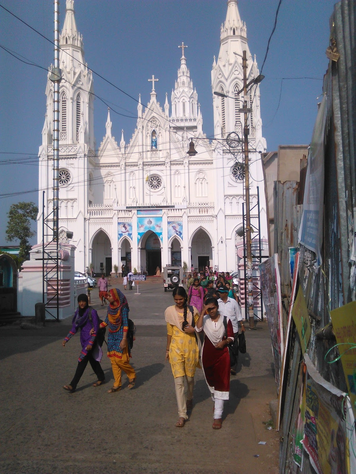 Well once again my vacation hasn’t gone as planned.  After two days on the train, which went surprising smoothly with mostly just a lot of reading as well as meeting a very nice man who bought me Chai while we talked. I’m in Thrissur right now, a town in the region of Kerala. Kerala is beautiful and green if not humid and scorching hot. Anyway,  while as a white person I am not allowed into the temple I most wanted to go. The Catholic Church has no racially discriminating rules and gladly let me come in and view the beautiful cathedral dedicated to Mary (I think). Of course as always no photos allowed inside so this shot will have to do. I did manage to see am elephant walking across the street. It was AWESOME. But by the time I got around to playing and running after it  had disappeared. Anyway, after walking around and trying to find something worth while to do I finally gave up. Now I’m just eating grapes on my bed, watching a movie and waiting for my midnight train. Next stop, the beach!  I figured,